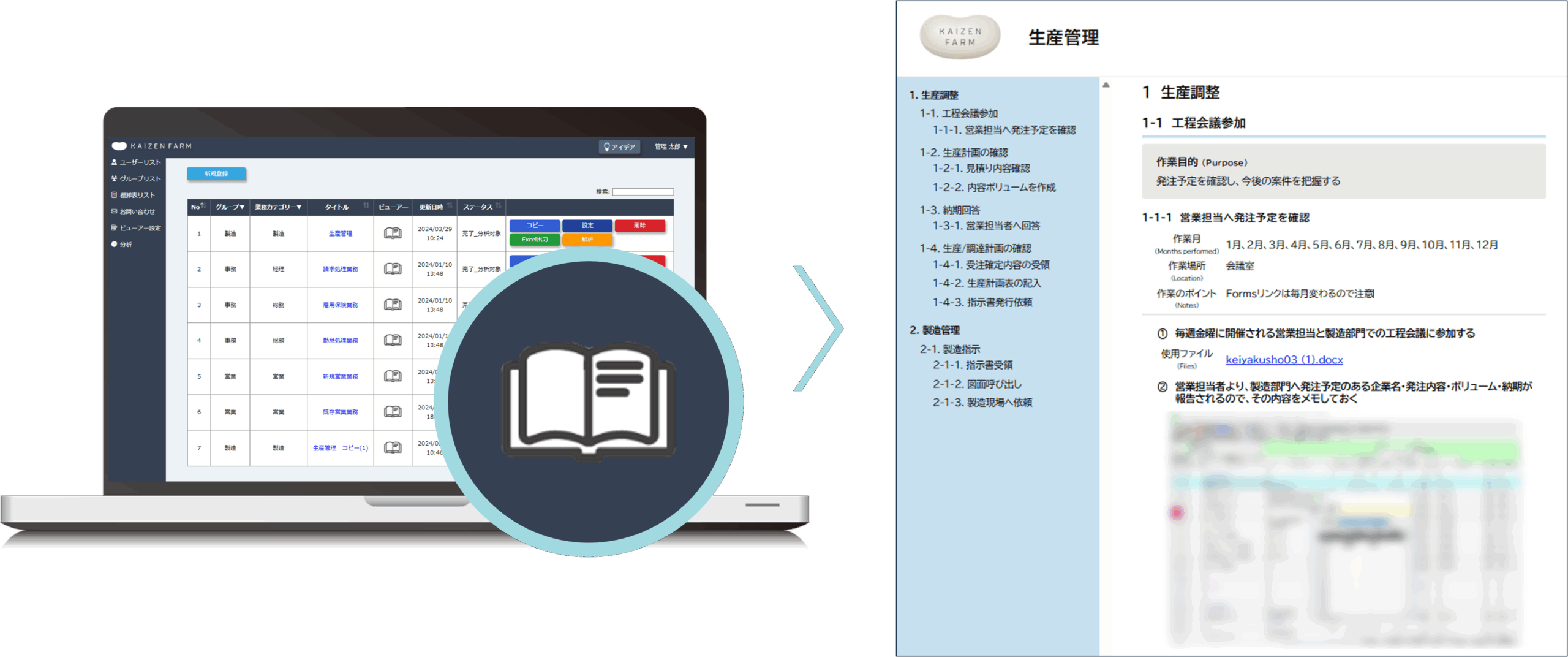 登録した業務手順のデータをボタン1つで電子マニュアル化します。